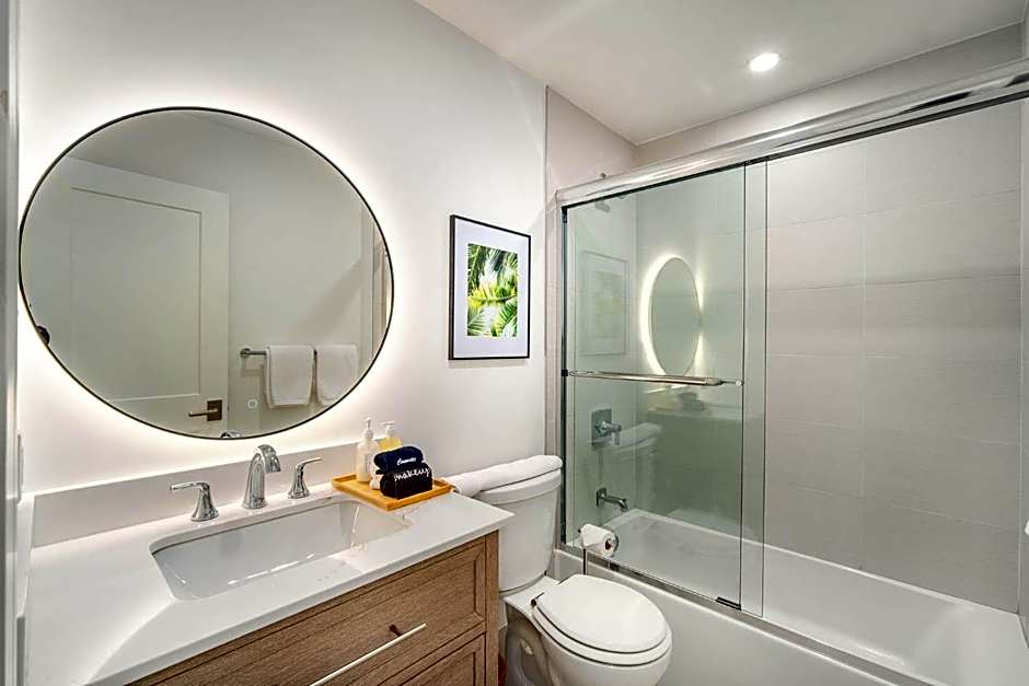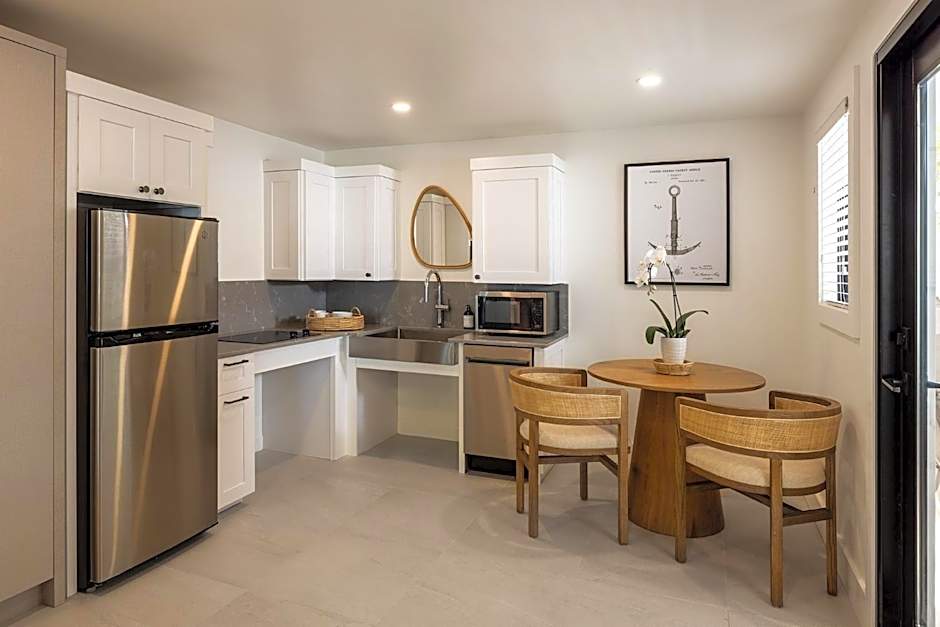 This one-bedroom accommodations includes a microwave, full size refrigerator, a combination oven and stove.